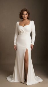 Свадебное платье из новой коллекции Plus Size с разрезом по ножке и фигурным вырезом. Бывает в наличии с 42 по 50й размер